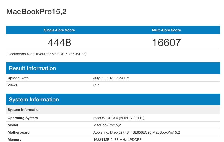 4コアになった13インチMacBook ProのベンチがGeekbenchに登場。メモリは16GBのままか