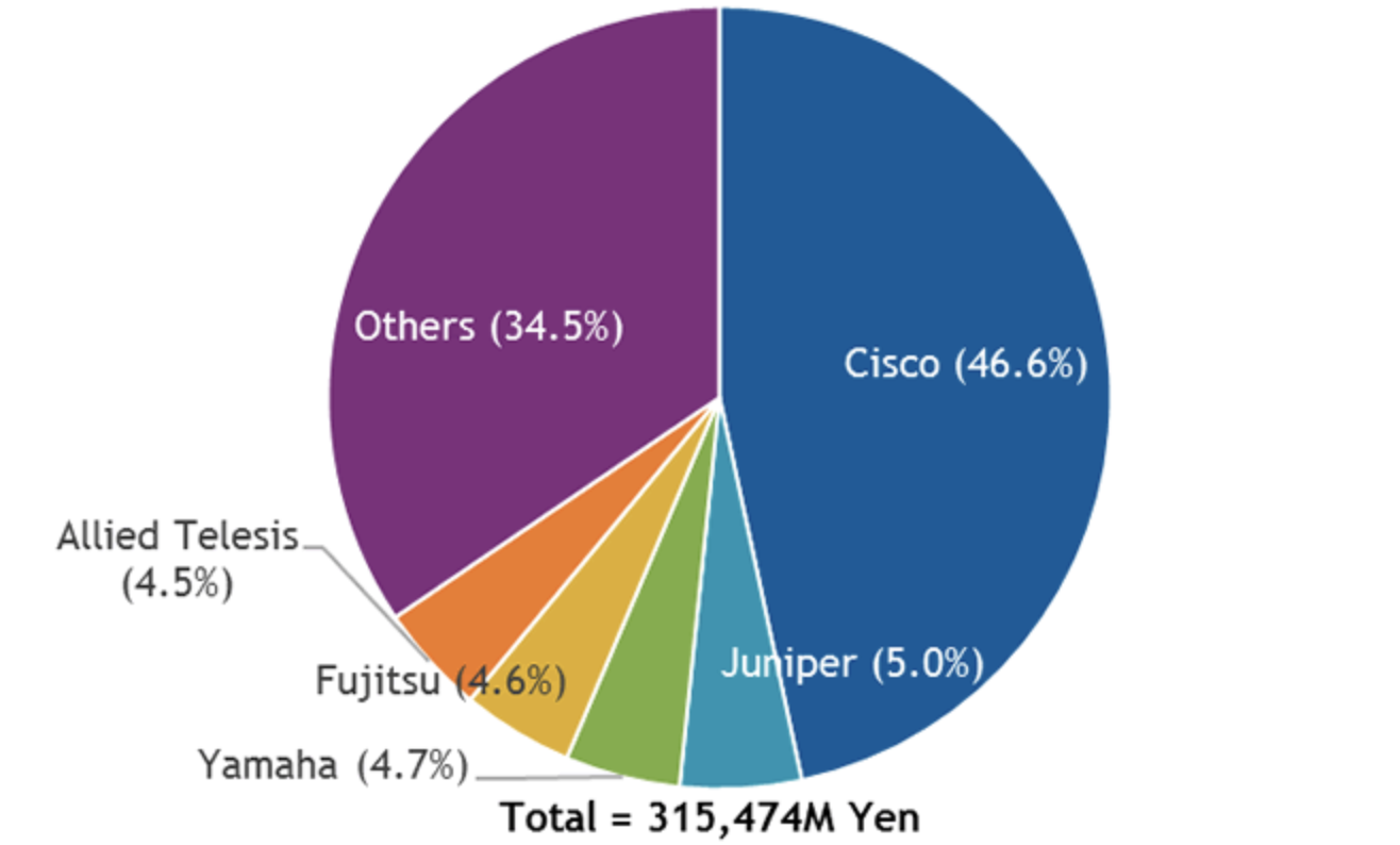 日本のネットワーク機器市場、シスコが圧倒的と判明