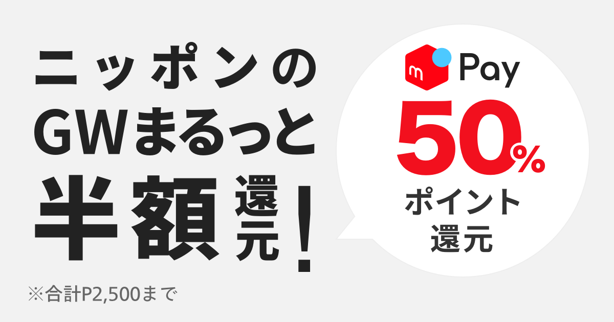 【朗報】メルペイ、GW中に最大70%のポイント還元キャンペーン開始。上限は2500ポイント