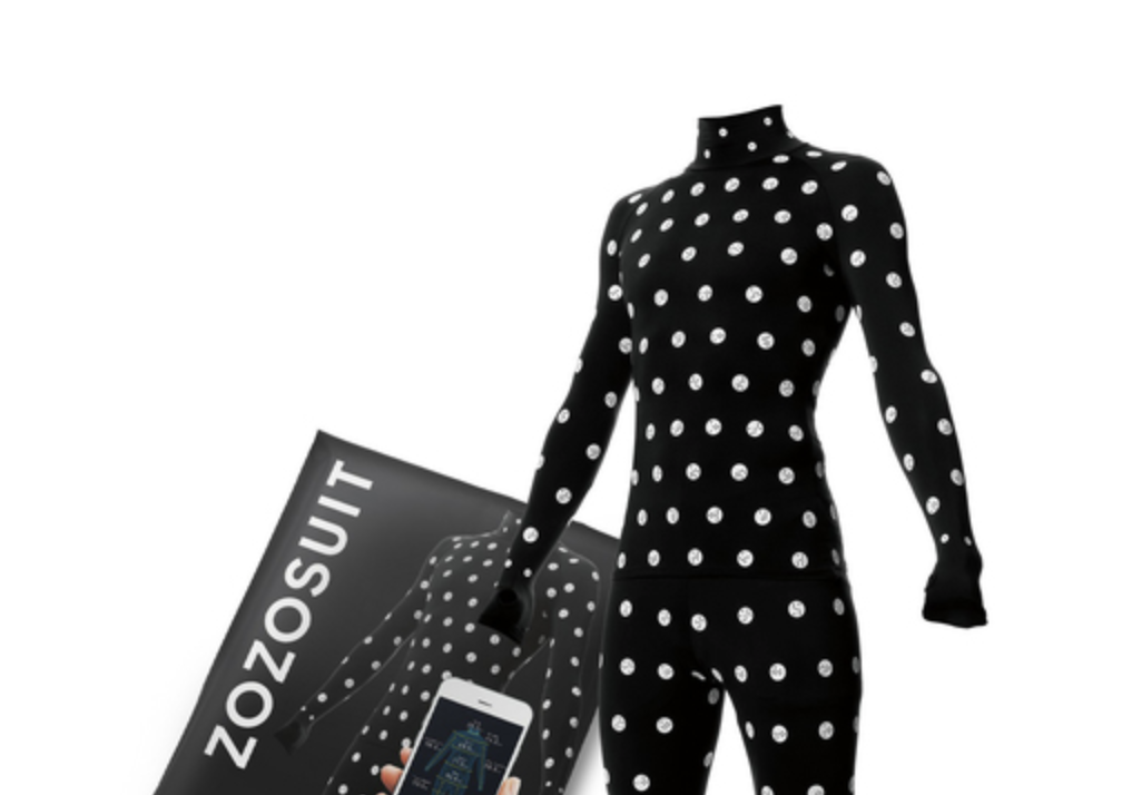ゾゾスーツは全身をぴったり覆うドット付きのスーツで、利用者はZOZOから送られてきたスーツを着てサイズを計測する。