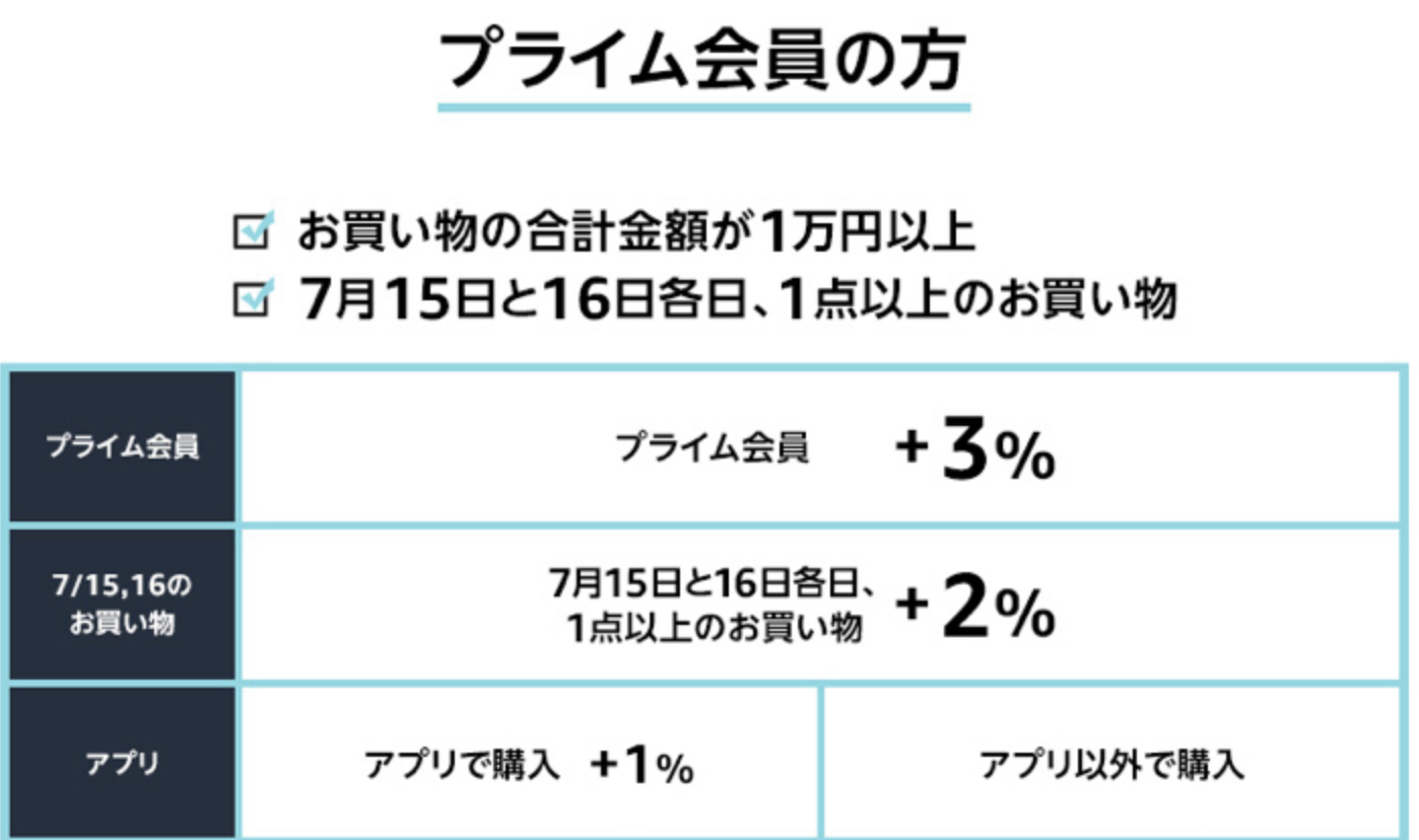 【重要】プライムデ一、今日も買えばポイント還元プラス2%付与