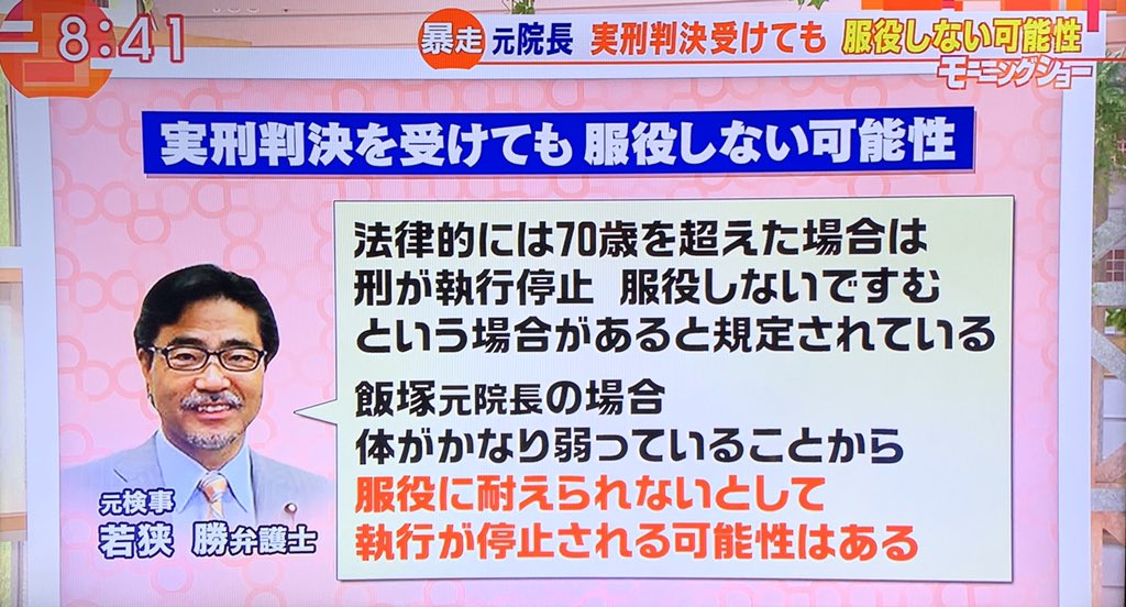 飯塚幸三、実刑判決を受けても服役しない可能性が出てくる