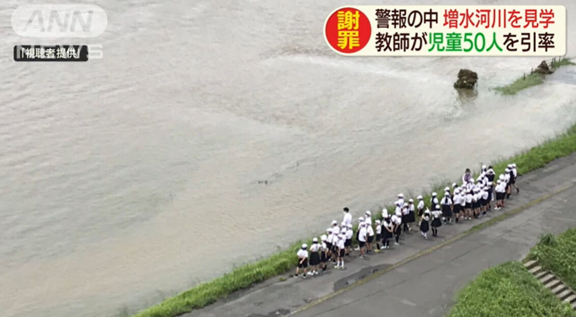 当時、川の水位は約5メートルあり、河川敷は見えなくなっていました。学校側は児童や保護者に謝罪しています。