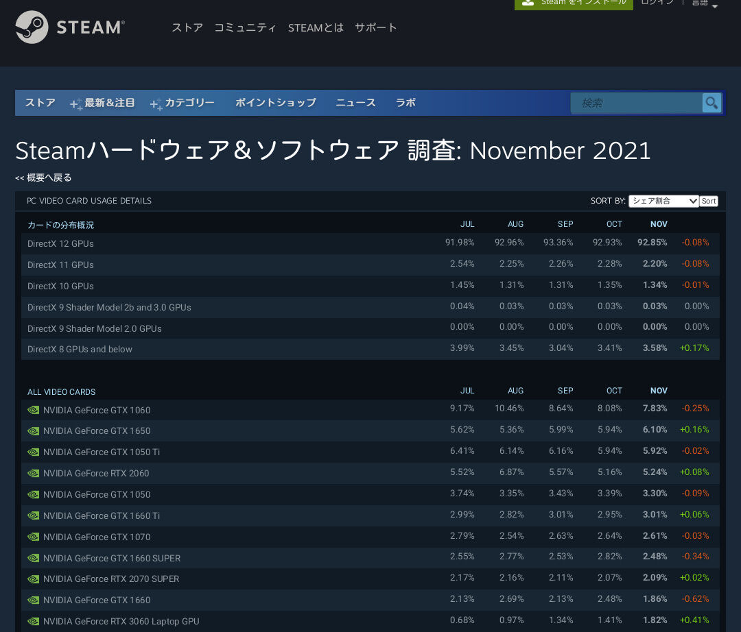 【悲報】なんJ民「ワイのグラボはRTX3070」「ワイは3080」→Steam「大半が1060でした」