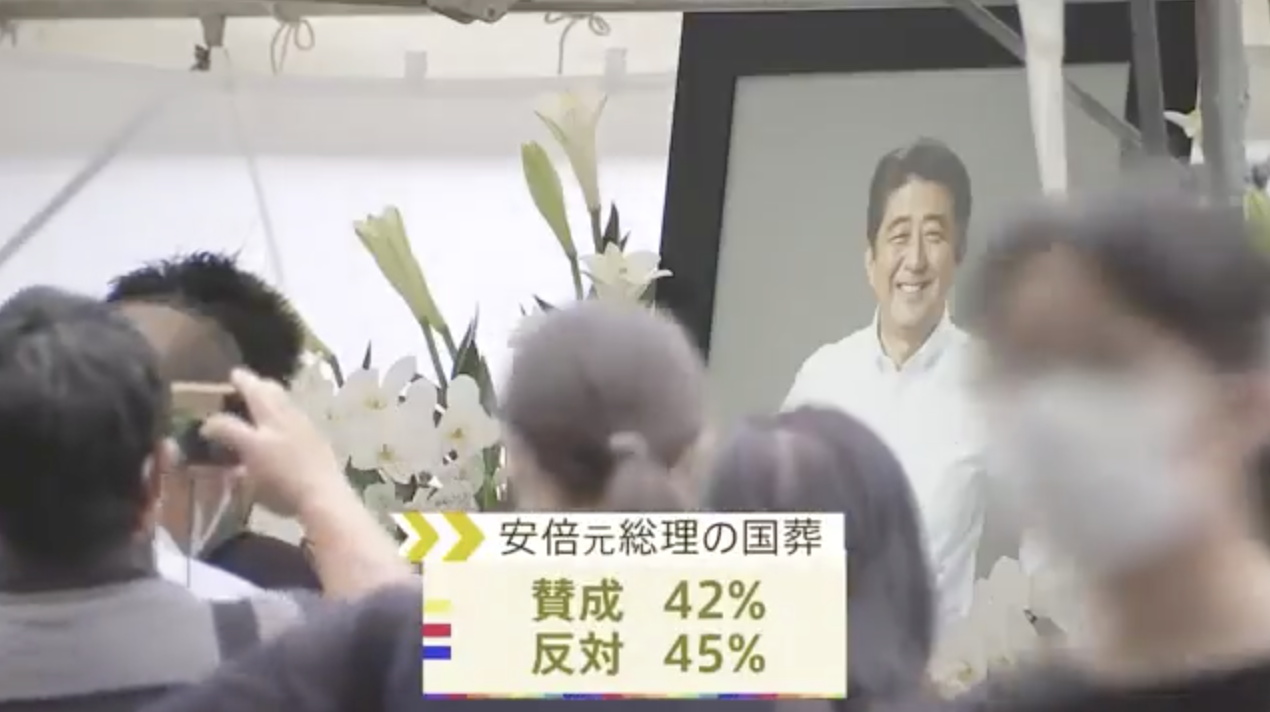 【速報】安倍元総理の国葬 「反対」45%、「賛成」42%