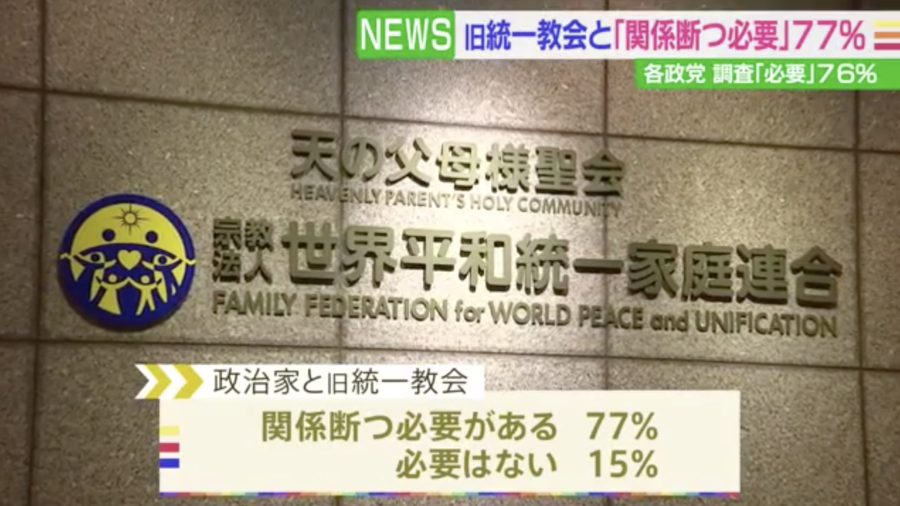 旧統一教会と政治家 「関係断つ必要」77% JNN世論調査