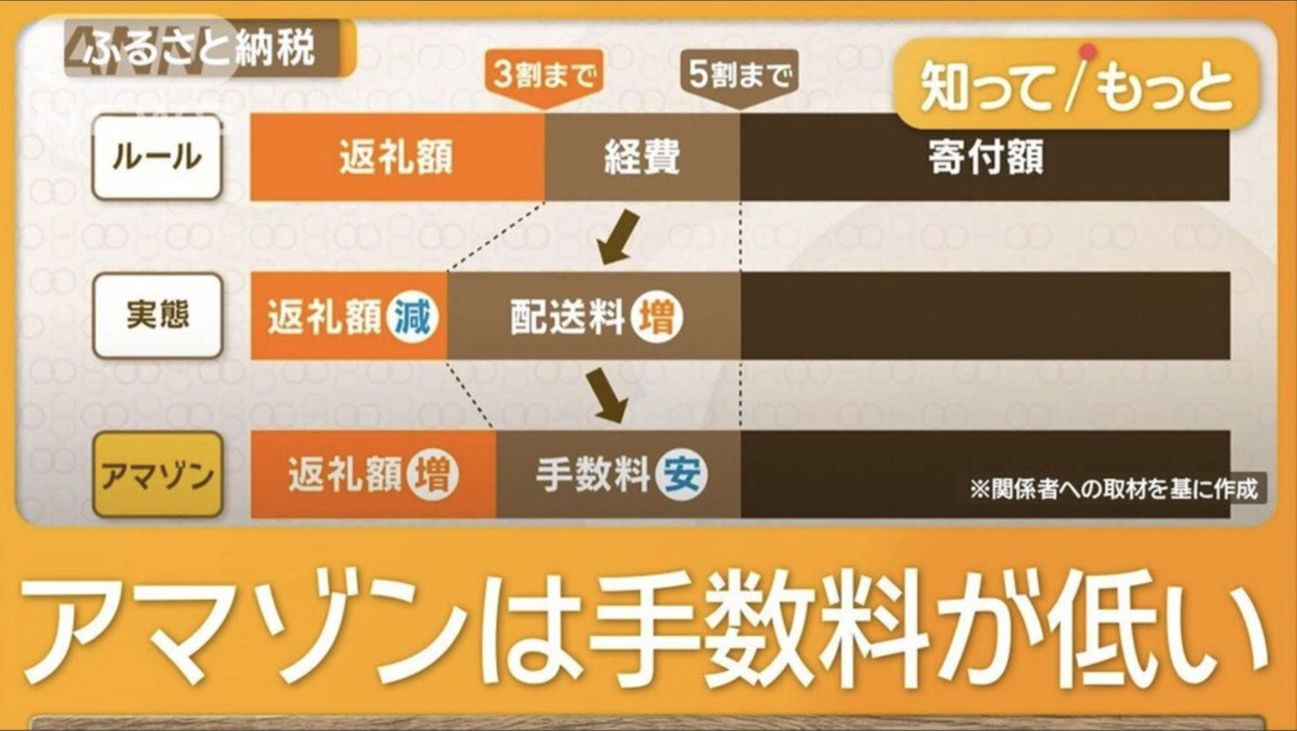 「他のポータルサイトよりも(アマゾンは)手数料が低いため、返礼品の3割ルールや5割ルールの中でも、寄付金額を他のポータルサイトより低く設定できる」