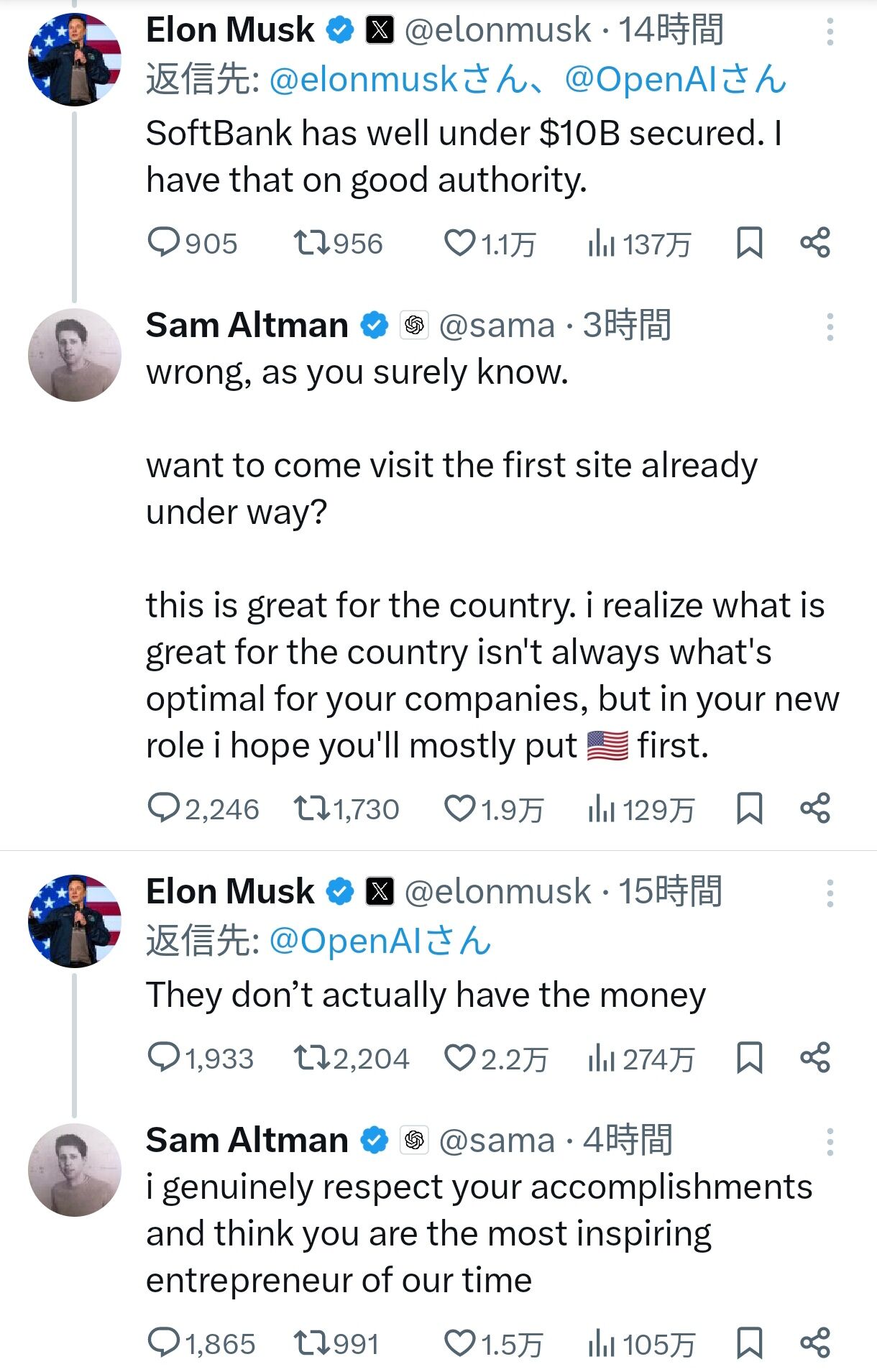 【悲報】孫正義「AIインフラに4年間で78兆円を投資する」イーロンマスク「そんな金無いだろ」