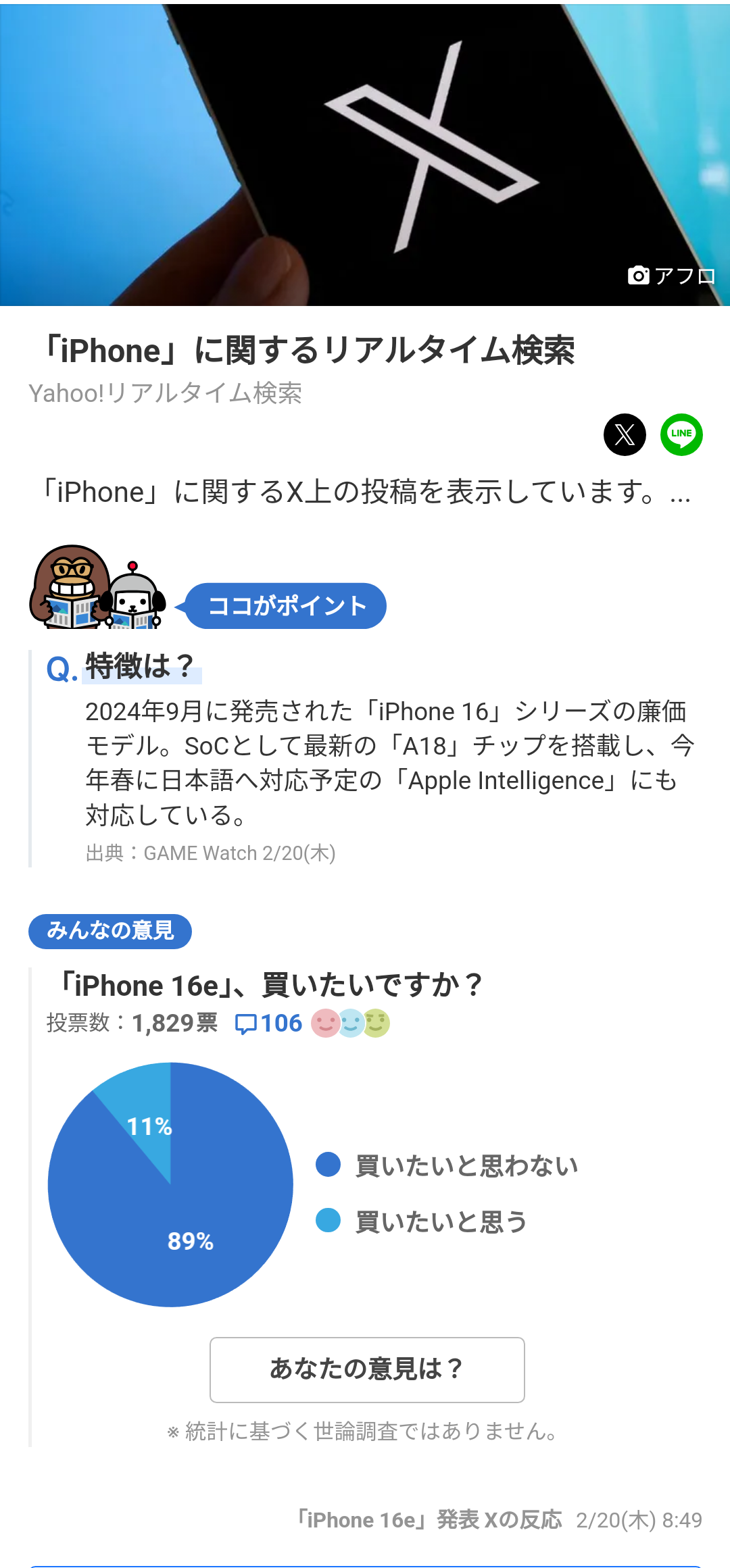 【悲報】日本人の9割「iPhone 16eを買いたいと思わない」
