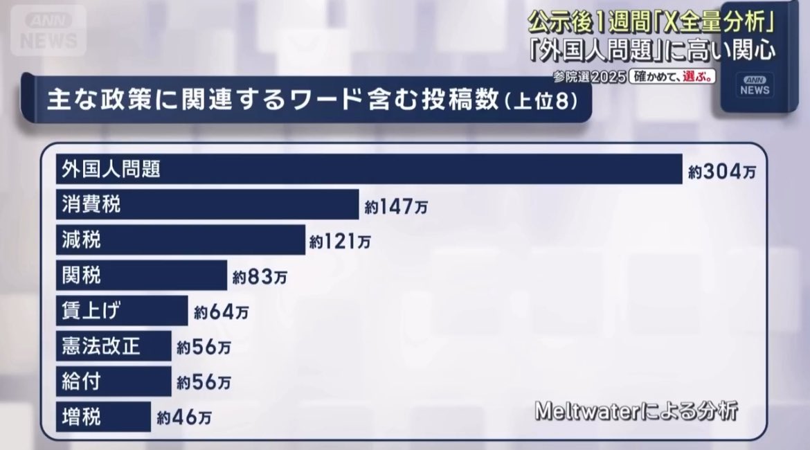 【衝撃】参院選の争点、「外国人問題」が圧倒的一位だと判明する