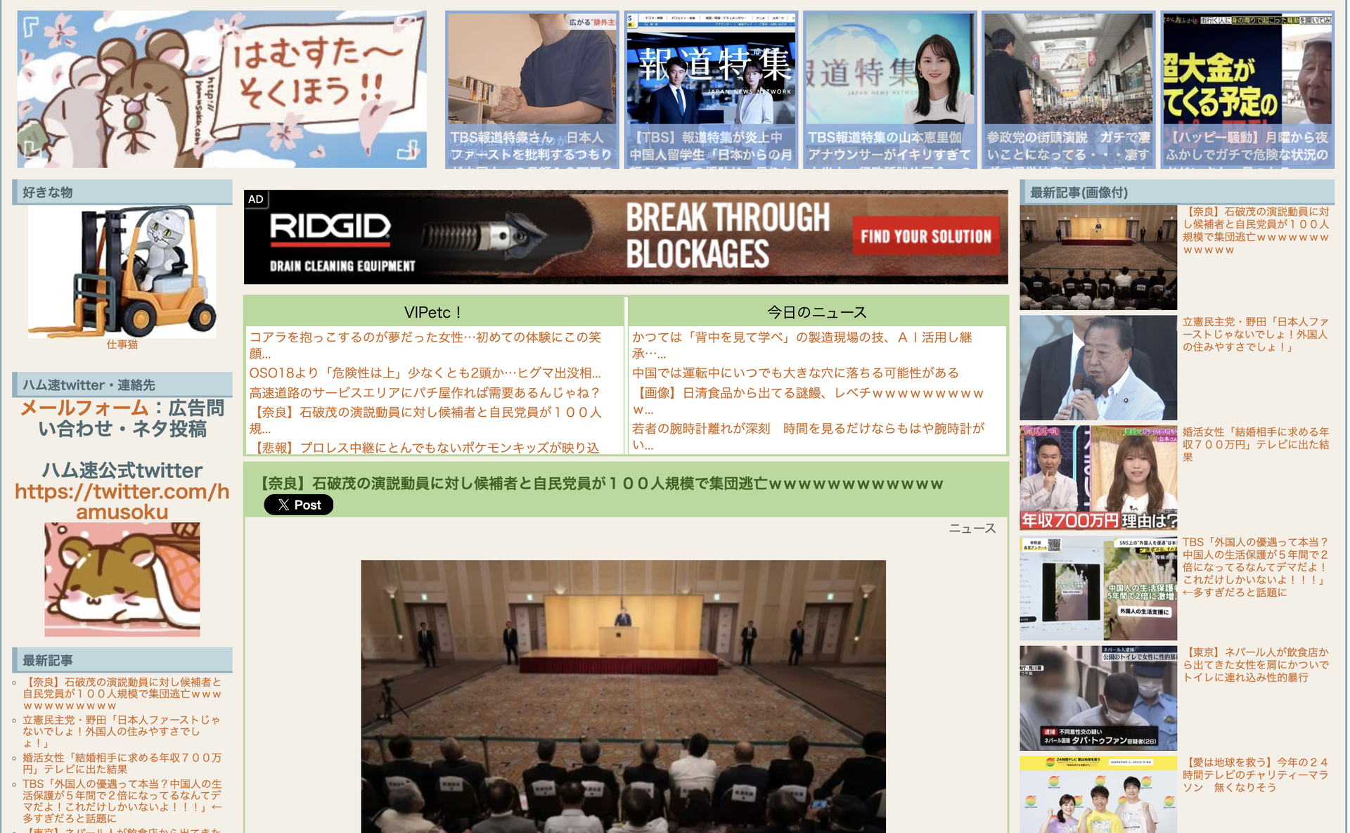 正直、政治ネタって万人ウケしないしあんまりハム速で記事にしたくないんよ、営業トークの三大タブー宗教・野球・政治なんて言われるぐらいやし、苦情くるしコメントも荒れるしwww