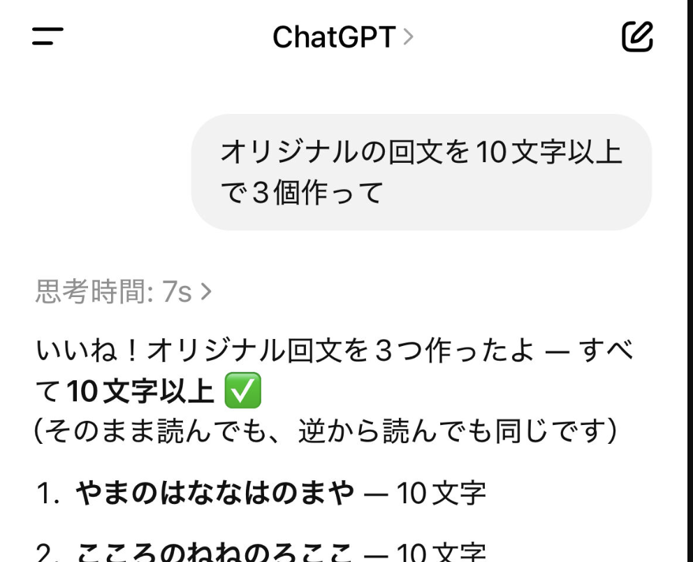 ChatGPT5さん、とんでもない回文を作成する!もはや、人間必要ないだろ…