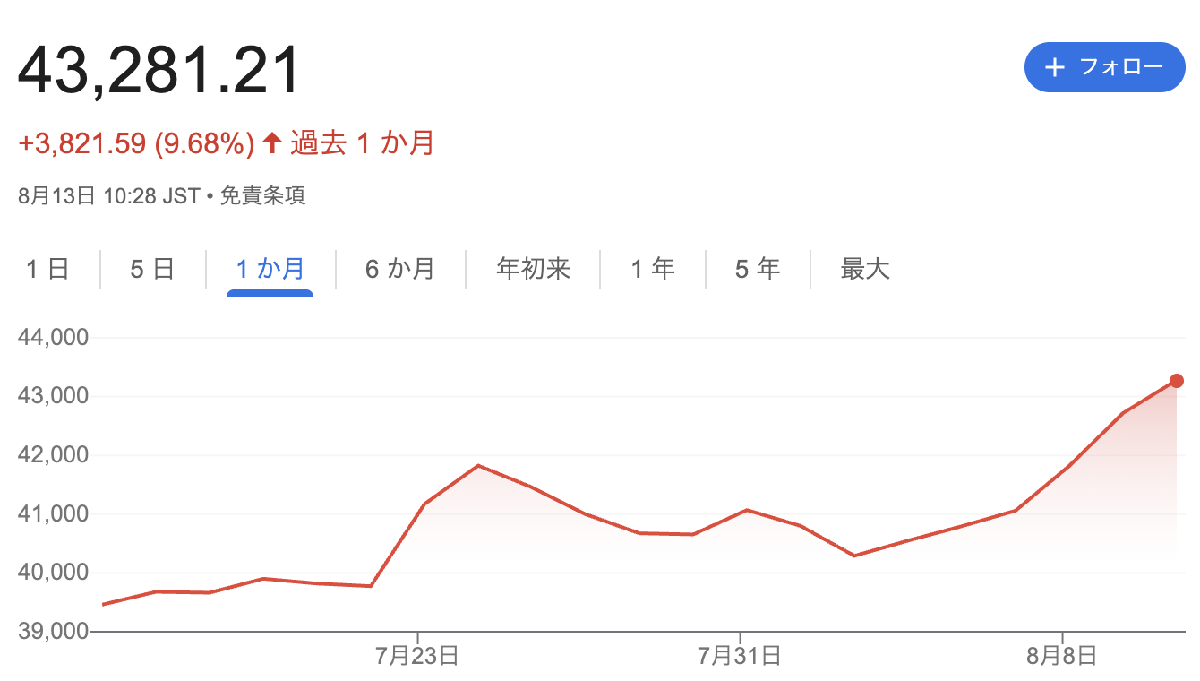 【朗報】日経平均株価、4万3000円台の爆上がり
