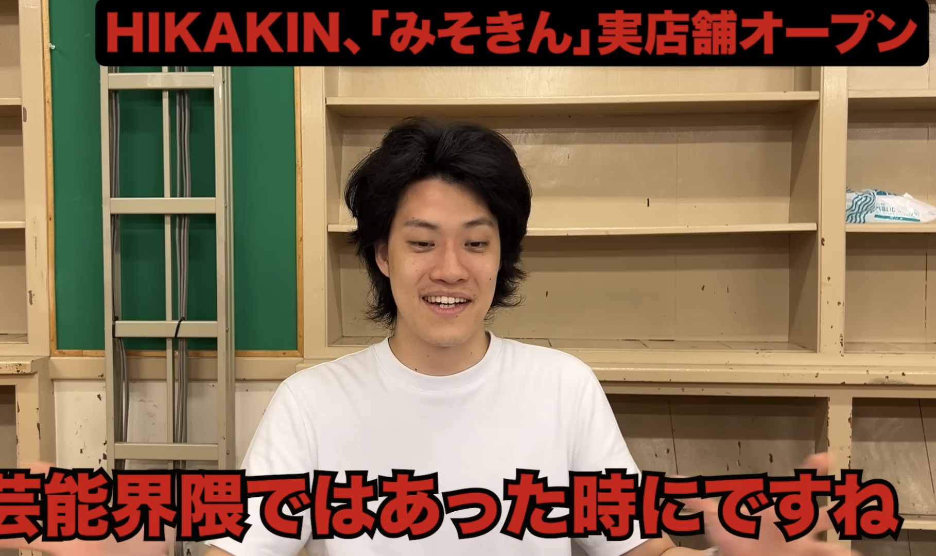 ヒカキンは東京八重洲口に期間限定で「みそきん」の実店舗をオープンさせた。粗品は「みそきん」をめぐって「結構、女性芸能人に押しつけるっていうのがね。こっちで話題になってましたけど。あっ香ばしいなヒカキン、みたいな。ちゃんと女好きなんやな、みたいな。全然知り合いじゃない女性芸能人とか、まぁ女優さんとか女性タレントとかにもみそきんを送りつけて。なんかワンチャン香ばしいな、みたいなんもありつつ」と語った。〉