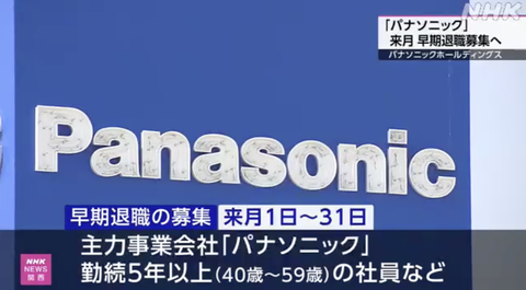 【悲報】パナソニック、全体の5%にあたる1万人規模の削減へ。40歳から59歳の社員が対象