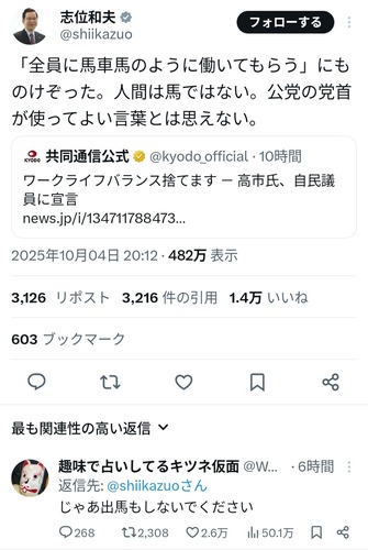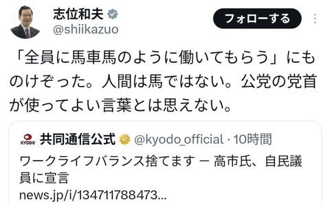 【悲報】高市「馬車馬のように働いて!」馬鹿「私たち市民にもこれ以上働けと?!」
