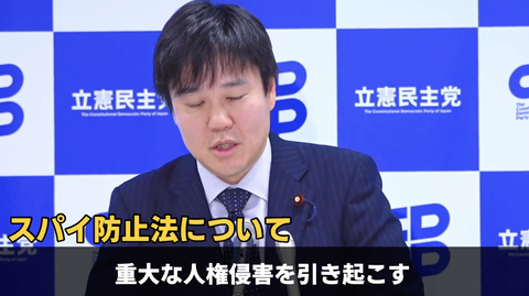 【悲報】立憲・本庄氏「外国勢力と通じた日本人がスパイしてる場合もあり、重大な人権侵害を引き起こすリスクもある」