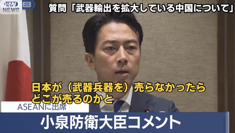 小泉防衛相「日本が武器を売りさえしなければ平和が保たれる?それは現実とかけ離れている事だ」